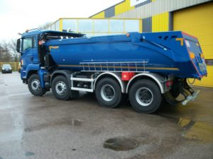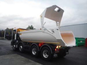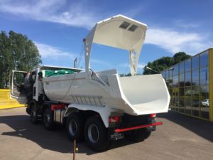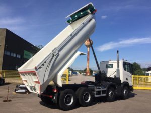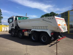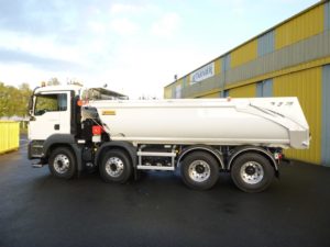 La caisse, en forme de coque, est constituée en acier spécial HARDOX 450, extrêmement résistant à l’abrasion et aux chocs.